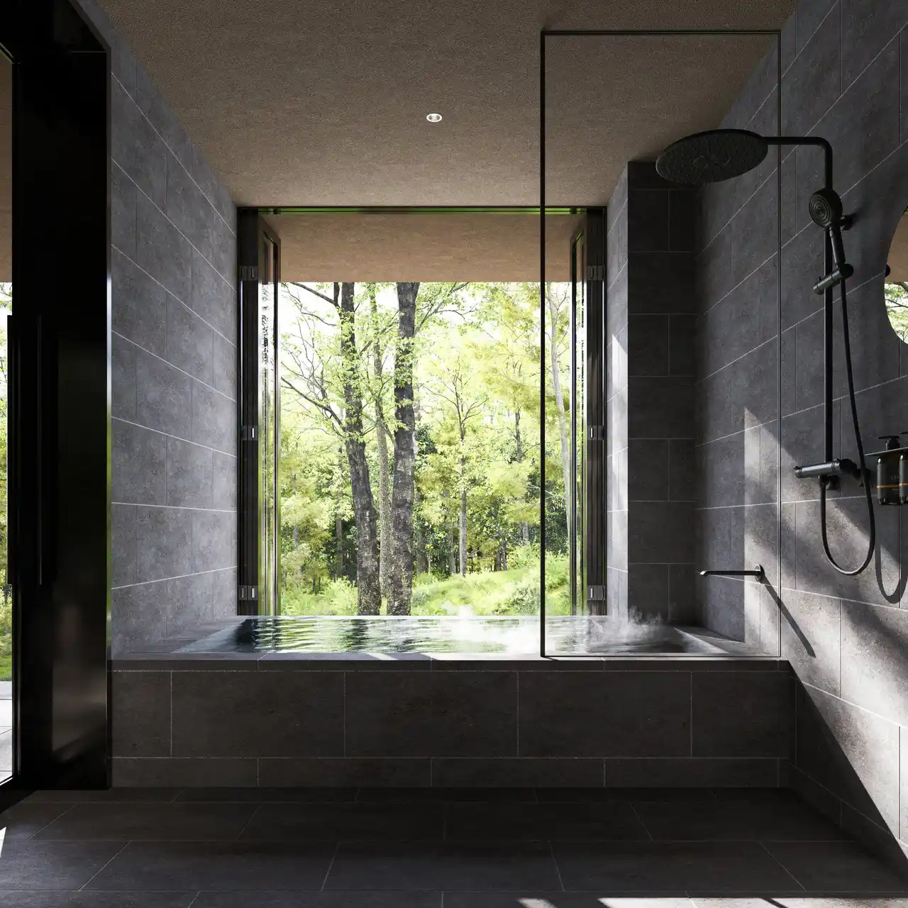 | バスルームやサウナでは、窓を開ければ森の香りと風が流れ込み、外気浴の心地よさが身体を整えます。自然のリズムに呼吸を合わせるひとときは、滞在者を本来の感覚へとそっと導きます。アメニティも滞在の体験を支える重要な要素です。敏感肌対応かつ自然派志向に配慮したアイテムを揃え、必要なものだけを残し不要を削ぎ落としたシンプルな設計で、心と身体を静かにリセット。肌や髪を整えながら、滞在中の感覚をやさしく整えます。 | |||||||||