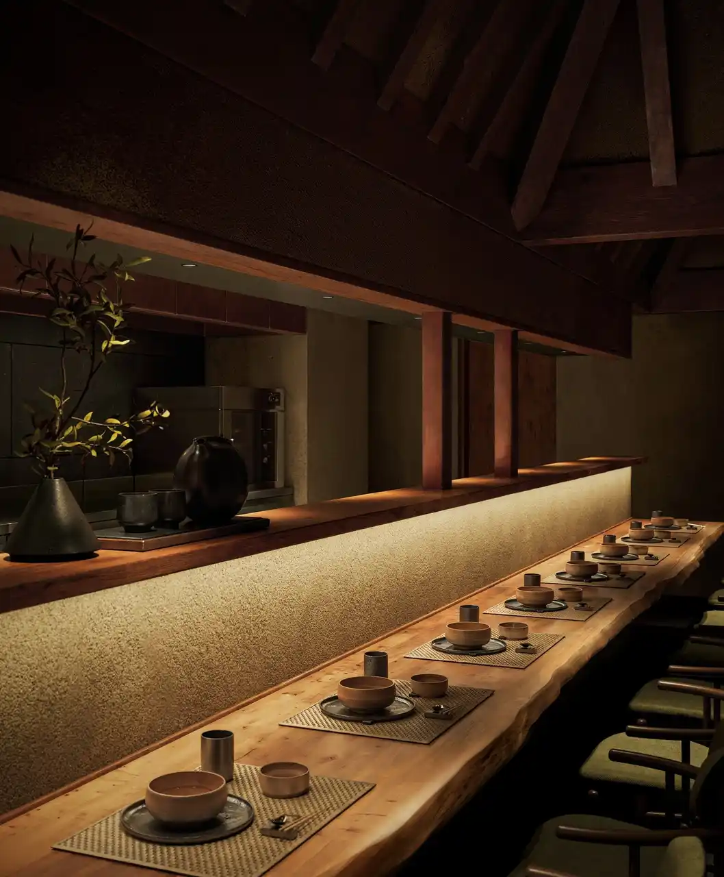 | カウンター席では料理人の所作や空気感を間近に感じ、個室では静かな時間の中でゆっくりと料理を味わうことができます。それぞれの過ごし方に合わせ、滞在全体と呼応する食の時間が、心に穏やかな余韻を残します。 | |||||||||