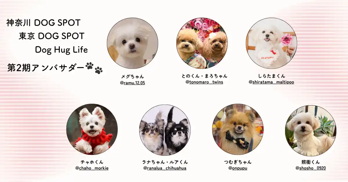 犬連れおでかけ情報を発信する「神奈川 DOG SPOT」「東京 DOG SPOT」「Dog Hug Life」(Instagram合計フォロワー約3.7万人)は第2期アンバサダーの就任を発表しました。
