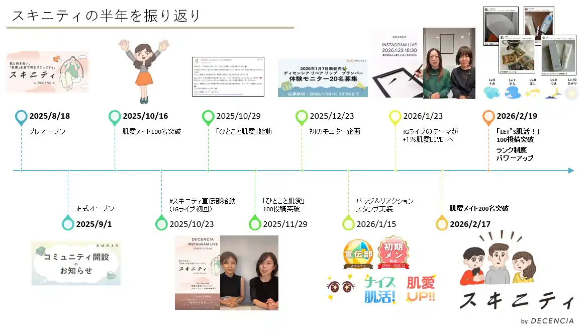 ディセンシアは今後もスキニティを通じて、肌悩みを共有するだけでなく、自分の肌と前向きに向き合えるコミュニティづくりを推進してまいります。また、半年後の1周年に向けた取り組みも予定しており、引き続きユーザーとともにコミュニティを育んでいきます。 |