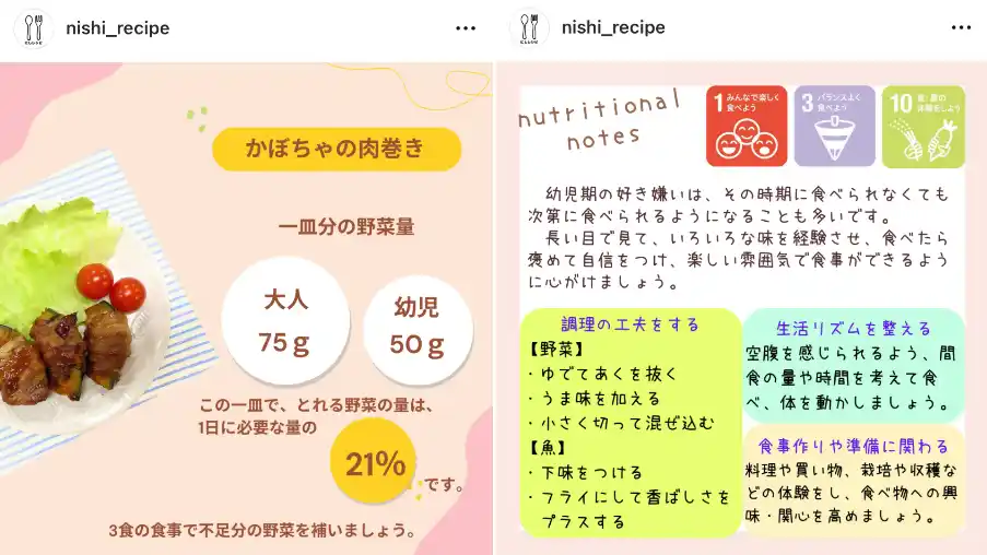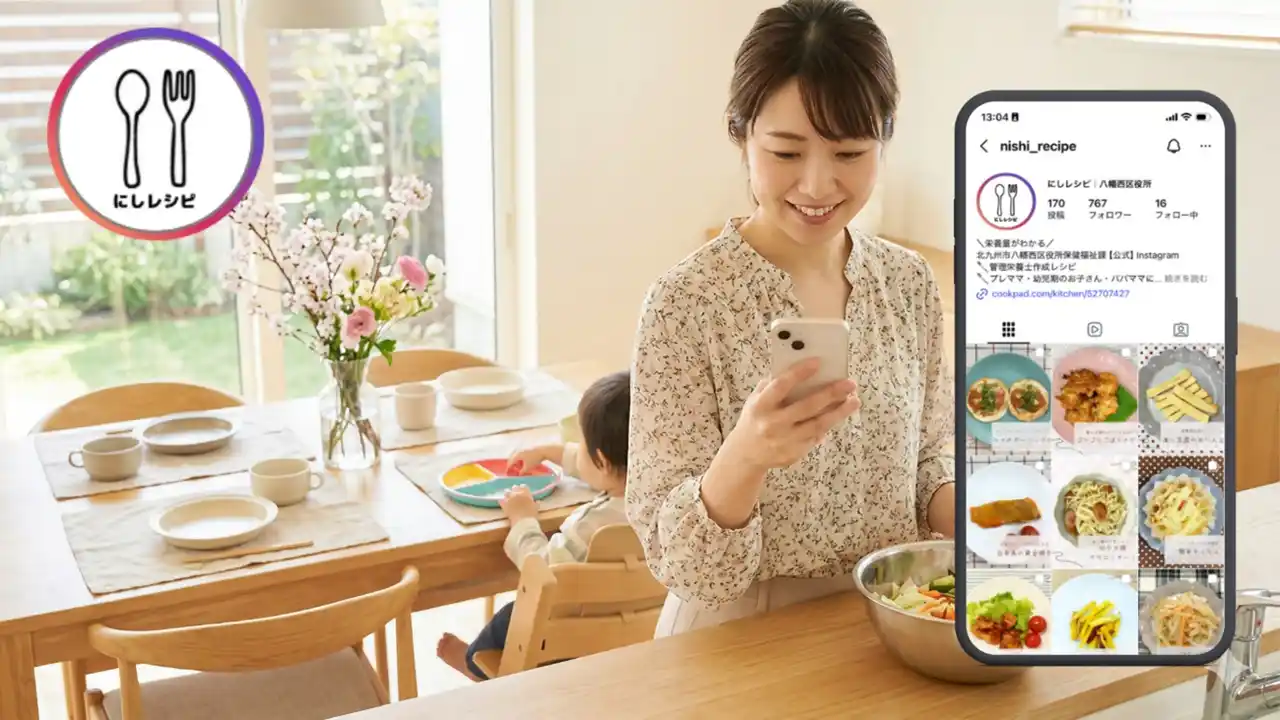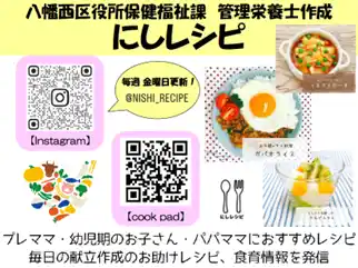 | 北九州市八幡西区役所は、この負担を和らげるため、管理栄養士が考案した「にしレシピ」をSNSや母子手帳アプリでお届けしています。 | ||||||||||||||||
