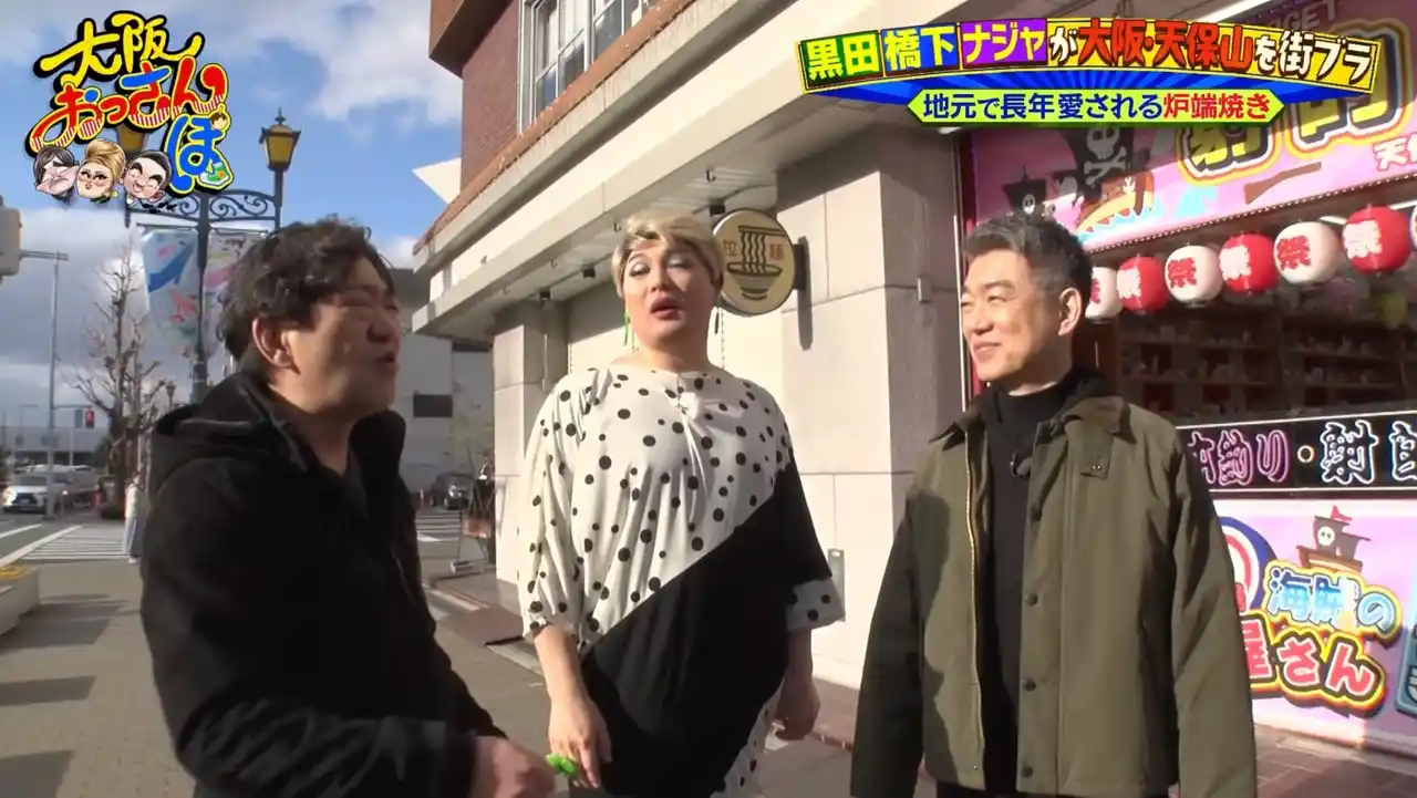 今回は、黒田有、橋下徹、ナジャ・グランディーバの3人が、大阪の湾岸部・天保山を“おっさんぽ”する。昨年12月にオープンした観光スポット「お菓子ミュージアム天保山」や、昭和の面影を色濃く残す昔ながらの町を巡る。 |