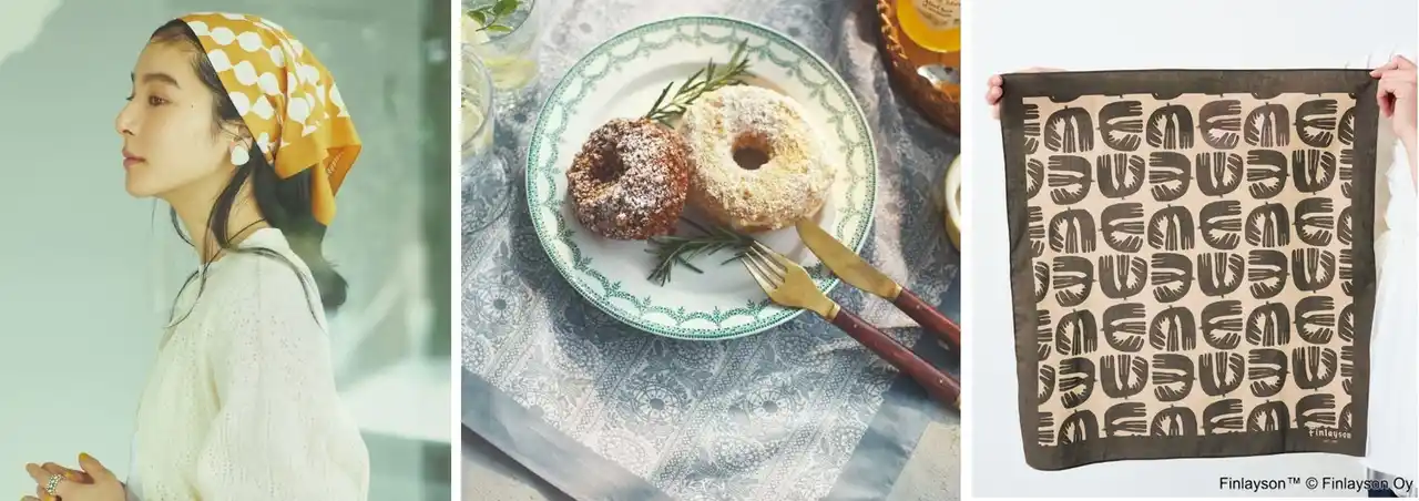 フェリシモは、「Finlayson[フィンレイソン]」との新作コラボアイテムを発表し、3月24日よりウェブ販売を開始しました。昨年2025年にフェリシモ創立60周年迎えるにあたり、フィンレイソン社代表のリスト・ヴォウティライネン氏らがフェリシモを訪問し、60年前にデザインされたテキスタイル〈オルガ〉のフレームアートが贈呈されるなど、両社の長年にわたる絆はより特別なものとなりました。この深い信頼関係から生まれた今回のコレクションは「めぶきの祝祭(Awakening of