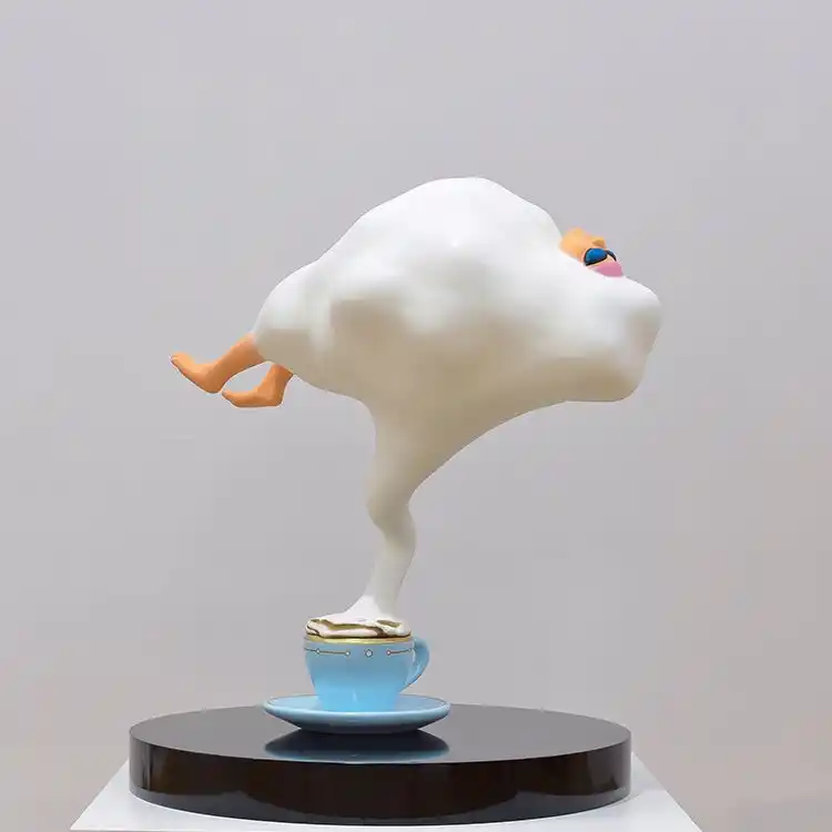 本展の注目作品のひとつが、木彫作品「SHABON」です。高さ約140cmの本作は、一木彫によって制作されており、素材の持つ存在感と、造形の細部まで丁寧に彫り進められた構造が特徴です。やわらかな色調と木の質感が調和した造形により、時間の流れが静かに感じられる空間を生み出しています。会場でぜひ実物をお楽しみください。 |