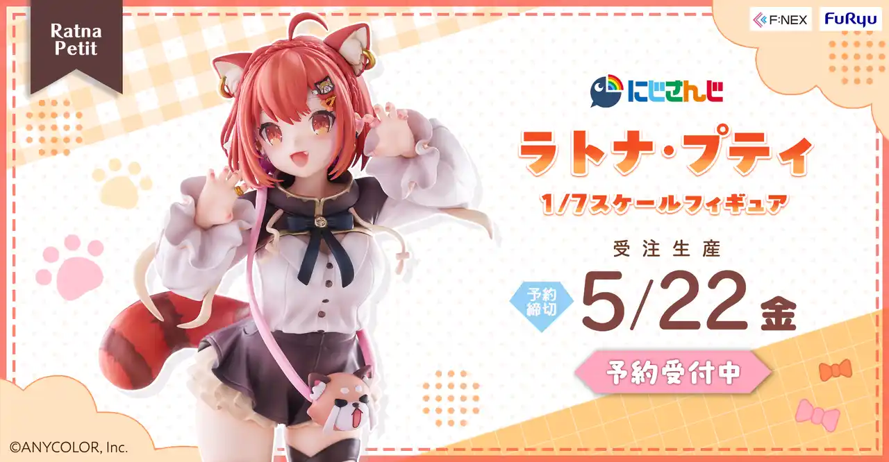 フリュー株式会社(本社:東京都渋谷区、代表取締役社長:榎本雅仁、以下フリュー)は、高品質ホビーブランド『F:NEX(フェネクス)』にて大人気バーチャルライバーグループ「にじさんじ」より『ラトナ・プティ 1/7スケールフィギュア』の発売を決定いたしました。本日4月10日(金)から、フリューが運営するホビーECサイト『FURYU HOBBY MALL』(URL:https://furyu-hm.com/)にて予約を開始いたします。 |