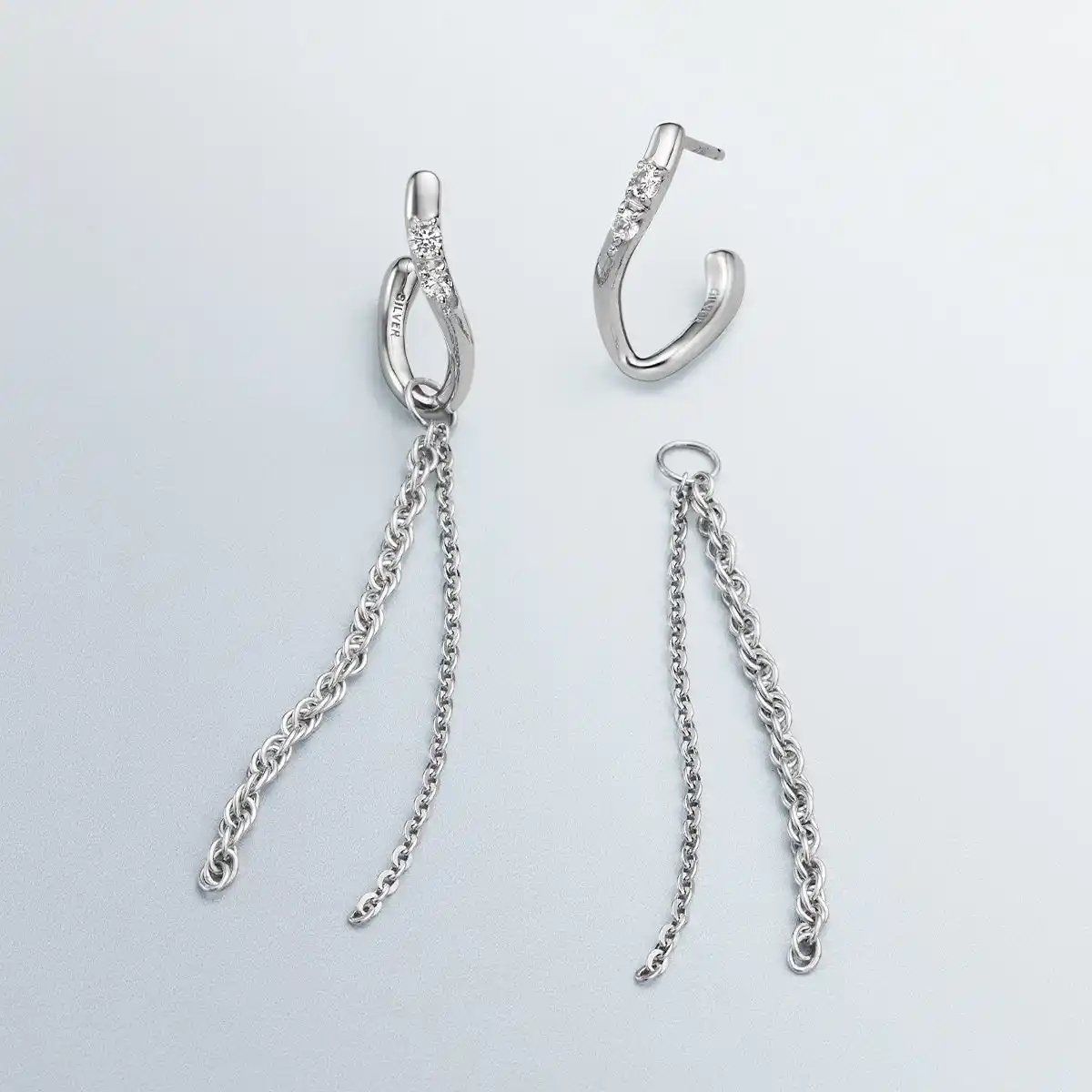 風の流れや波のきらめきをイメージしたジュエリー。爽やかな風の流れを表現したチェーンリングと、波の輝きを思わせるチェーンリングの2種類を展開します。航海のお守りとも言われるアクアマリンをあしらい、新たな一歩を踏み出す勇気をそっと後押しするような想いを込めています。ピアスは風の流れを思わせるラインが揺れ、軽やかな動きとともに耳元で上品に輝きます。チェーンを取り外してフープピアスとしてもお楽しみいただけるアイテムです。 |