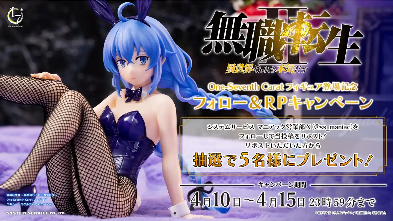 抽選で5名様に4月登場 無職転生II ~異世界行ったら本気だす~ One-Seventh Caratフィギュア ロキシー・ミグルディア バニーVer.をプレゼント。 |