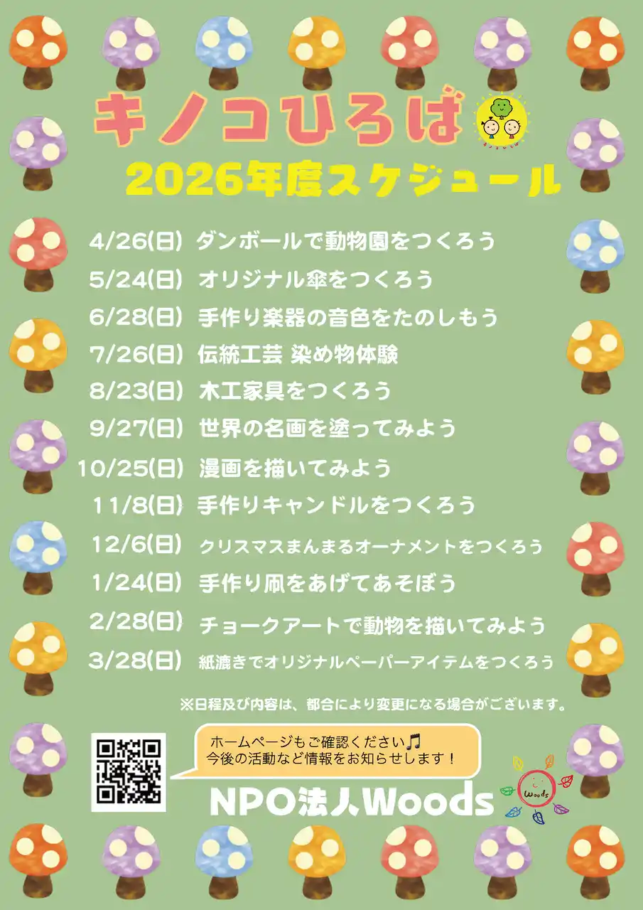 | [キノコひろば] - NPO法人Woods主催、2026年度開催スケジュール公開 |