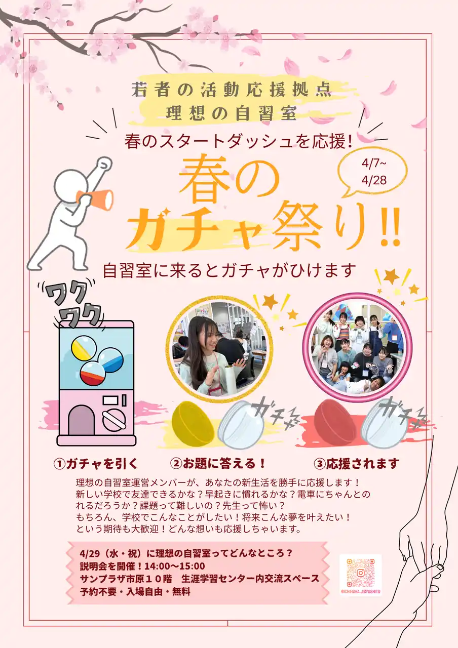 2026年春、理想の自習室がもっと利用しやすくなります!4月限定イベント「春のガチャ祭り」も開催中。皆様のご利用をお待ちしております。 |