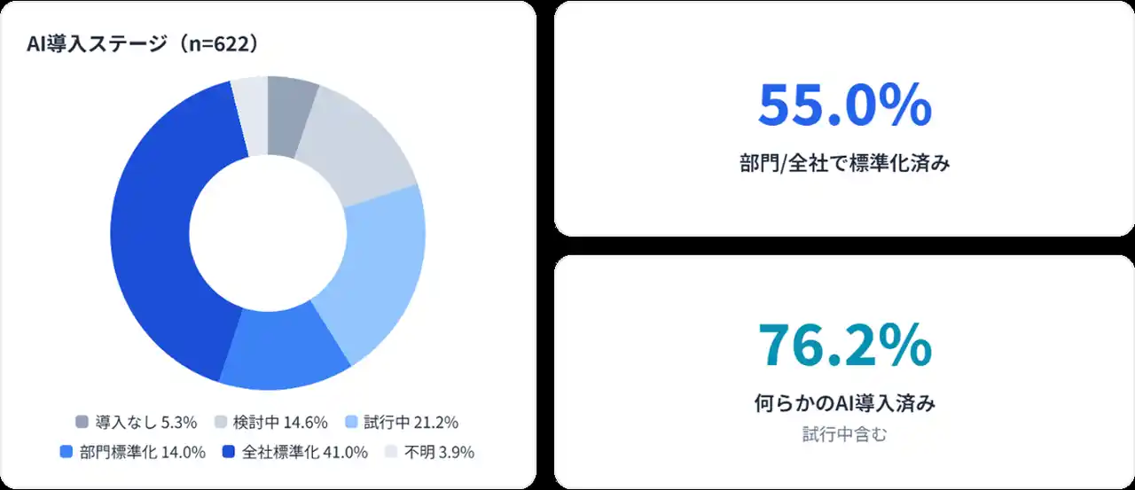 ・AI導入率は76.2%に達するも、判断の質への貢献は限定的。 |