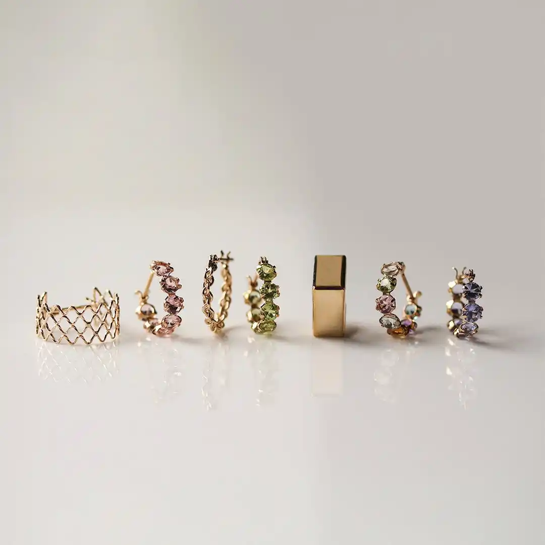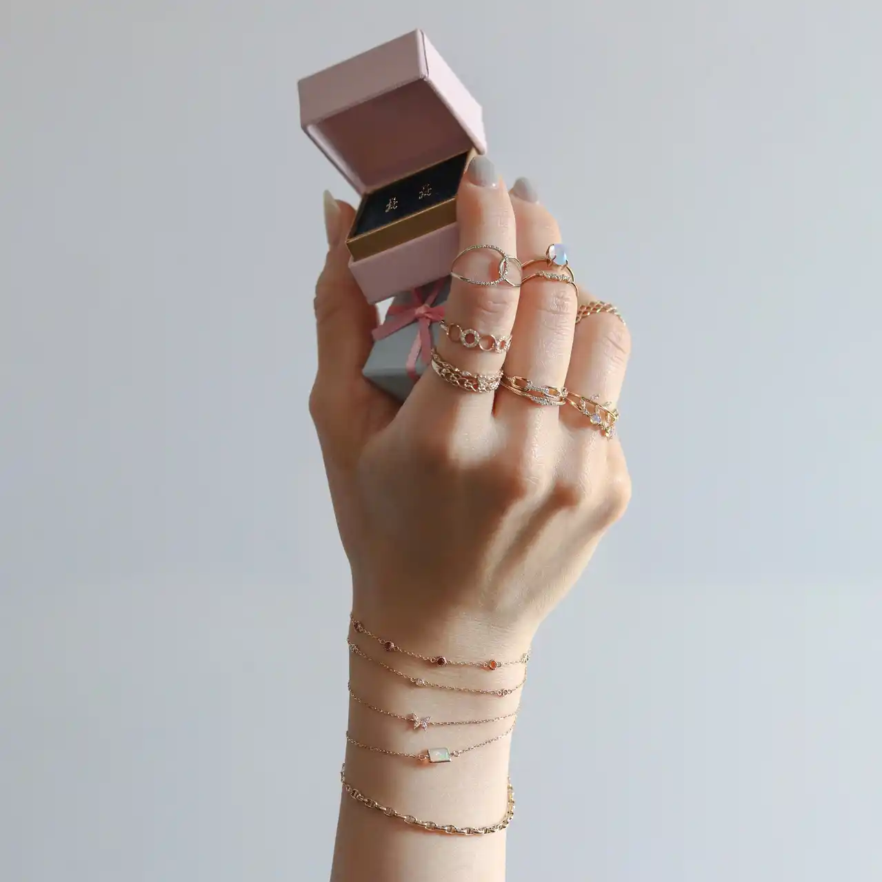 「華奢なジュエリーをこんなに重ね付けするといろんなバリエーションが生まれるんだ」といった、ジュエリーに対して新しい価値観を感じていただきたく、誕生したのがcui-cuiです。 |