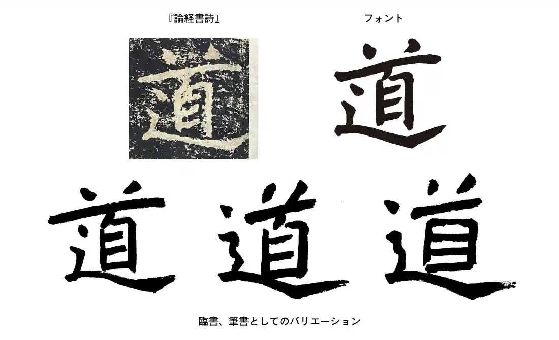 摩崖碑(自然の岩壁に直接彫られた文字)特有の風化や、石に刻まれた文字ならではのゴツゴツとした質感をデザインに落とし込んでいます。これにより、デジタルフォントでありながらも、本当に石から拓本をとったかのようなリアルで温かみのあるテキスト表現が可能になります。 |