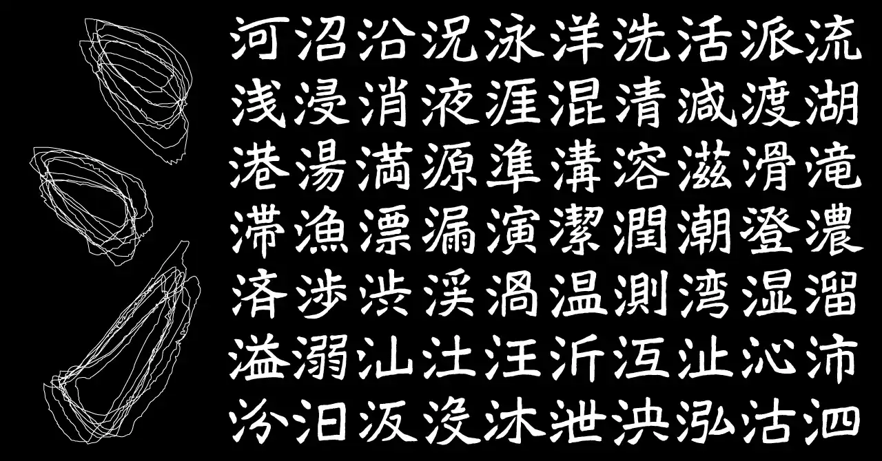 手書きのため、全ての形が異なる「さんずい」 |