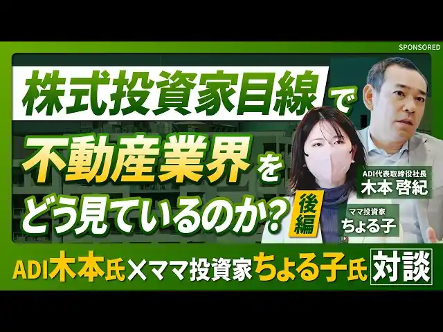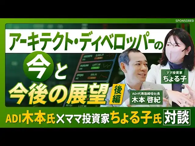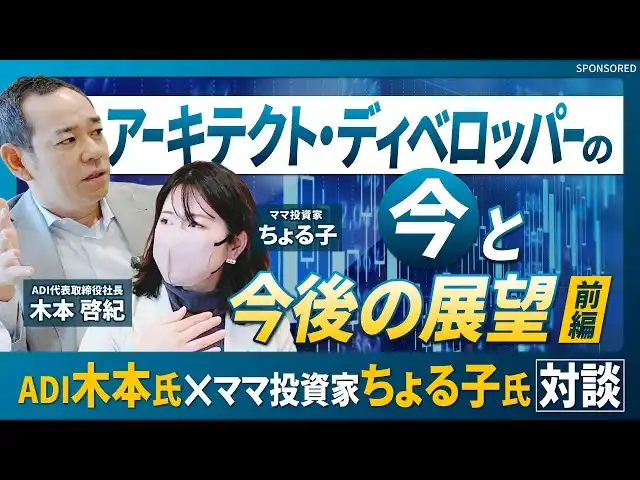 | 株式会社アーキテクト・ディベロッパー(本社:東京都中央区銀座、代表取締役社長:木本 啓紀、以下「ADI」)は、元手240万円を3億円に増やした実績を持つママ投資家・ちょる子氏との特別対談動画・記事を、株式会社幻冬舎ゴールドオンライン公式YouTubeチャンネルにて全4回シリーズ、最終話まで公開しました。 | ||||||||||||||