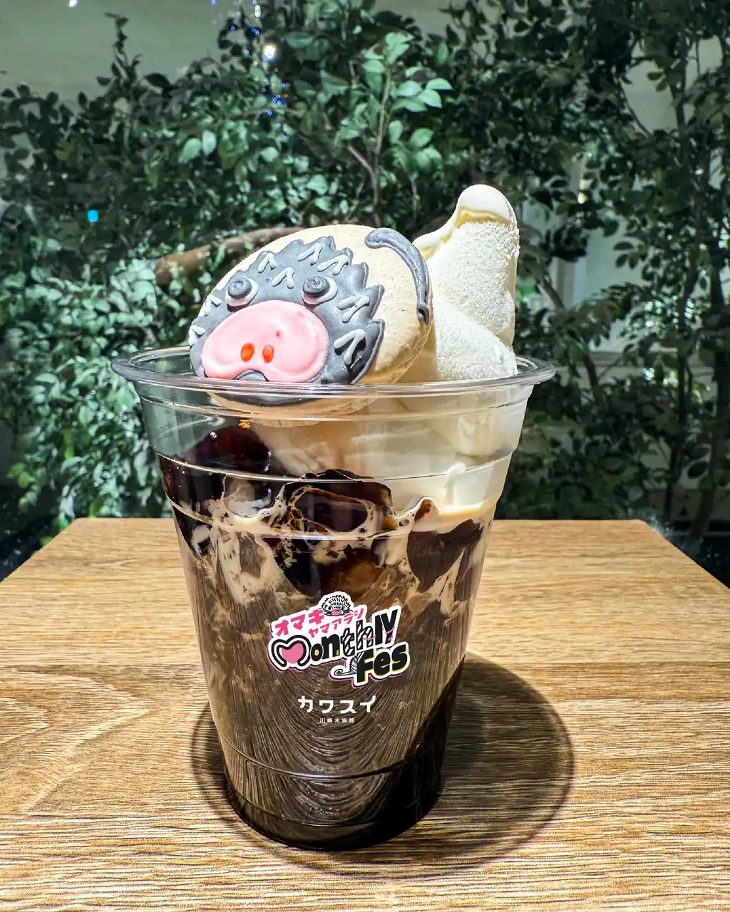 オマキヤマアラシがプリントされた特別なマカロンが乗っています。 |