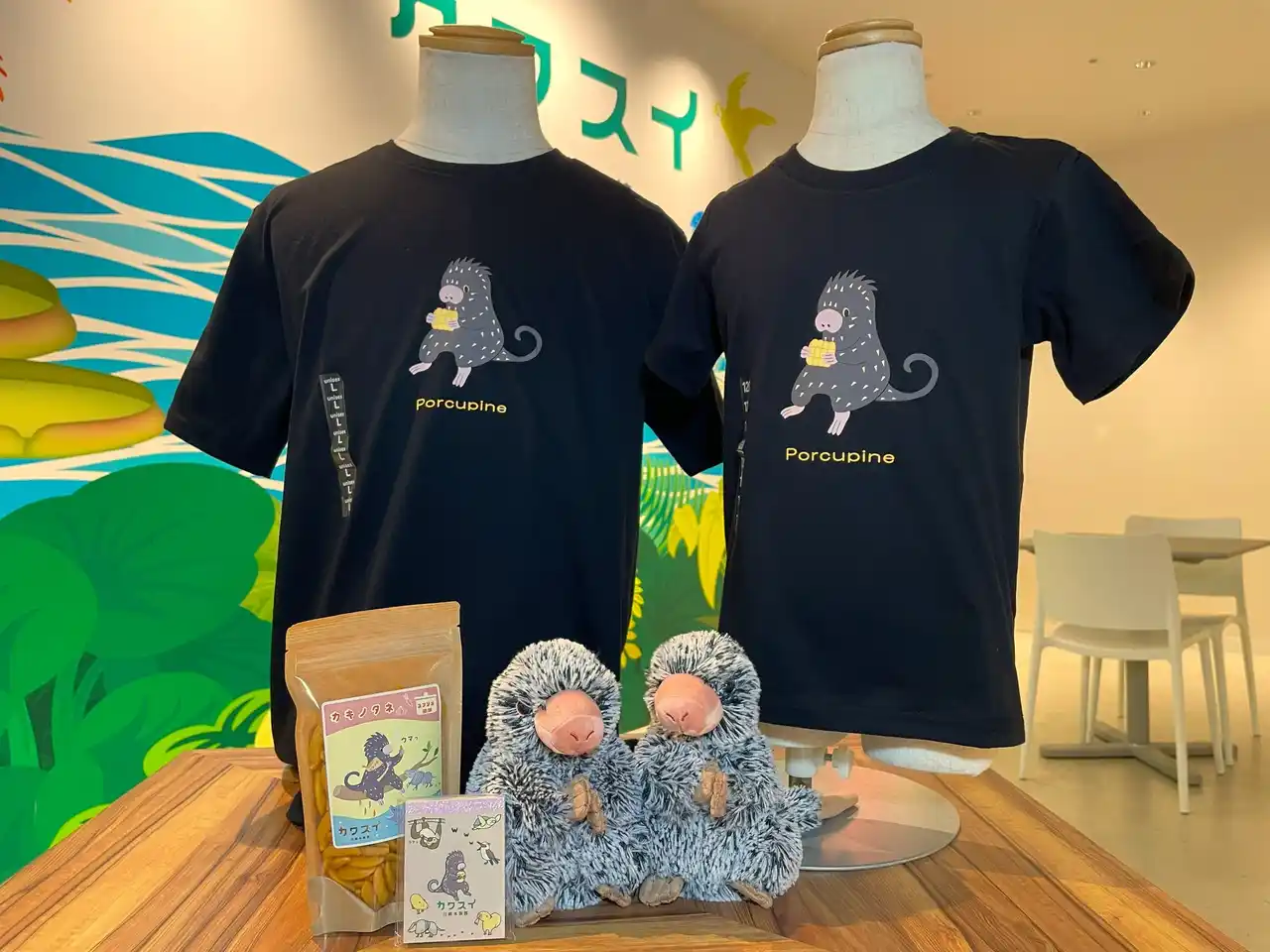 オマキヤマアラシがデザインされたグッズや抜け落ちた針などカワスイでしか買えないグッズを販売します。 |