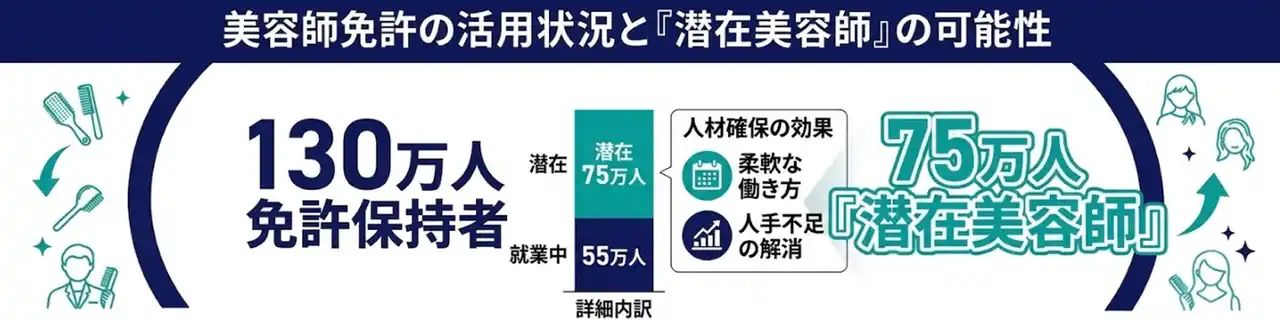 多くの分野で労働力不足が深刻化する中、潜在層のスキルを眠らせることなく社会の資産として活用できる仕組みは不可欠です。本サービスを通じて美容師の方々が柔軟に働ける環境を整え、業界の発展をパートナーとして支えてまいります。 |