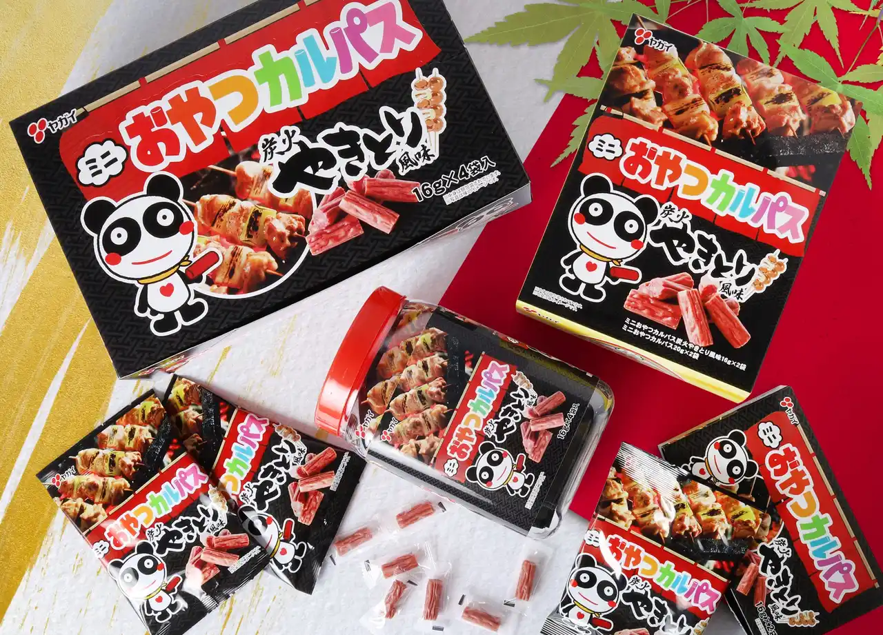 ジューシーなカルパスの旨味と、噛めば噛む程炭火の香り広がるやきとり風味がクセになる味わいでつまんだら最後、止まらなくなるクセになる味わいです! |