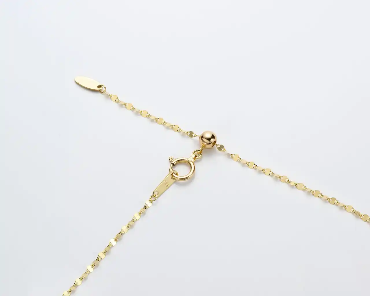 チェーンは最大50cmまで調整可能なスライド仕様。 装いに合わせて長さを変えられます。 |
