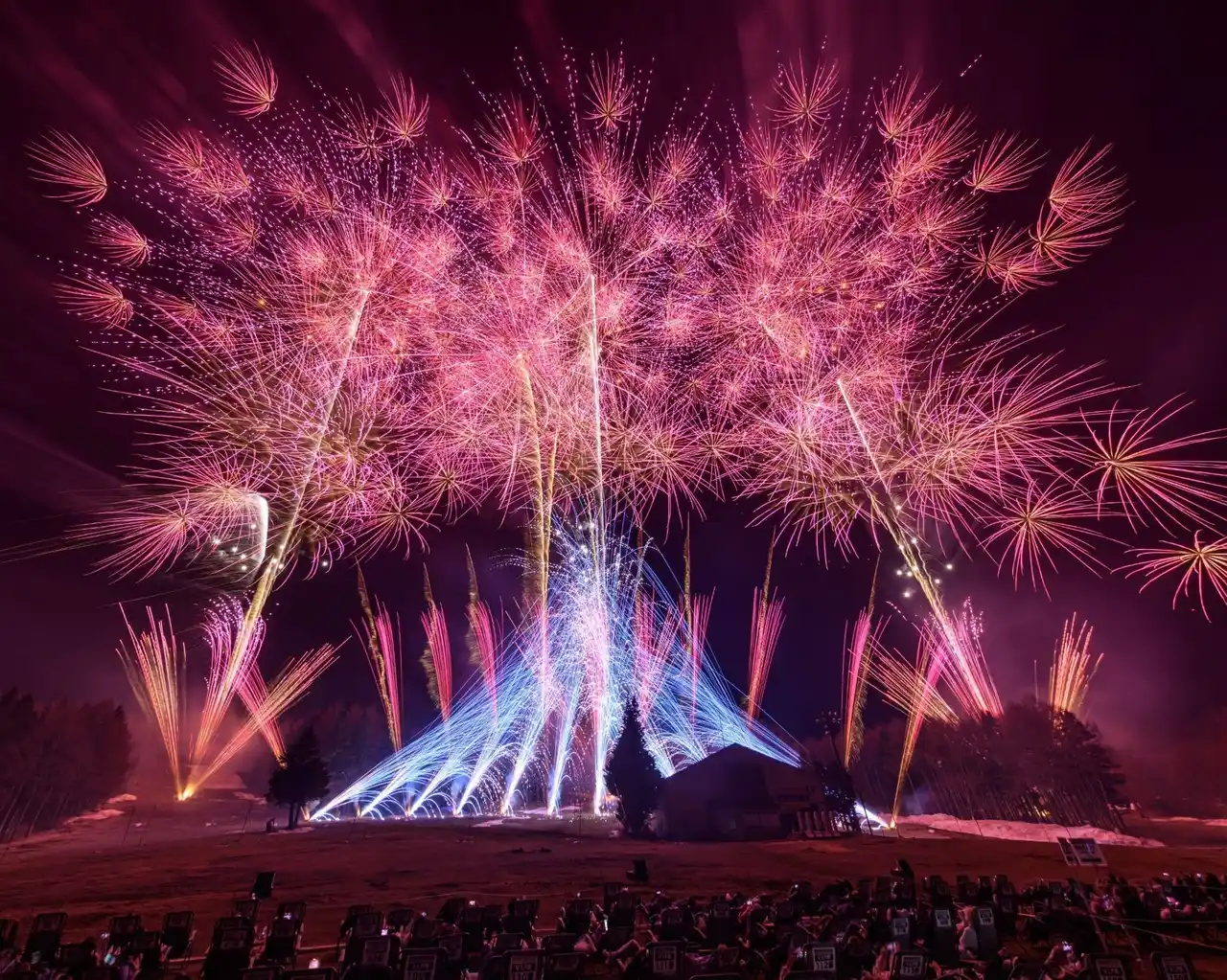「BIG4」として君臨してきた名匠たちに、さらなる至宝が加わり「BIG5」へと進化。日本が世界に誇る五大煙火店が、その持てる全ての技、情熱、そしてプライドを一本のスターマインに結集。富士山の広大な裾野をキャンバスに、これまでの常識を覆すほどの密度と色彩、そして地響きのような轟音が夜空を埋め尽くします。 |