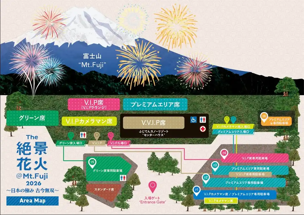 古今無双~(以下、絶景花火)』の全演目プログラムと美食サービスを発表いたします。2026年の『絶景花火』は、世界トップクラスの花火師が“BIG4”から”BIG5”に進化し、一夜限りで富士山に初集結する花火エンターテインメントと昇華しています。開催テーマは「日本の極み