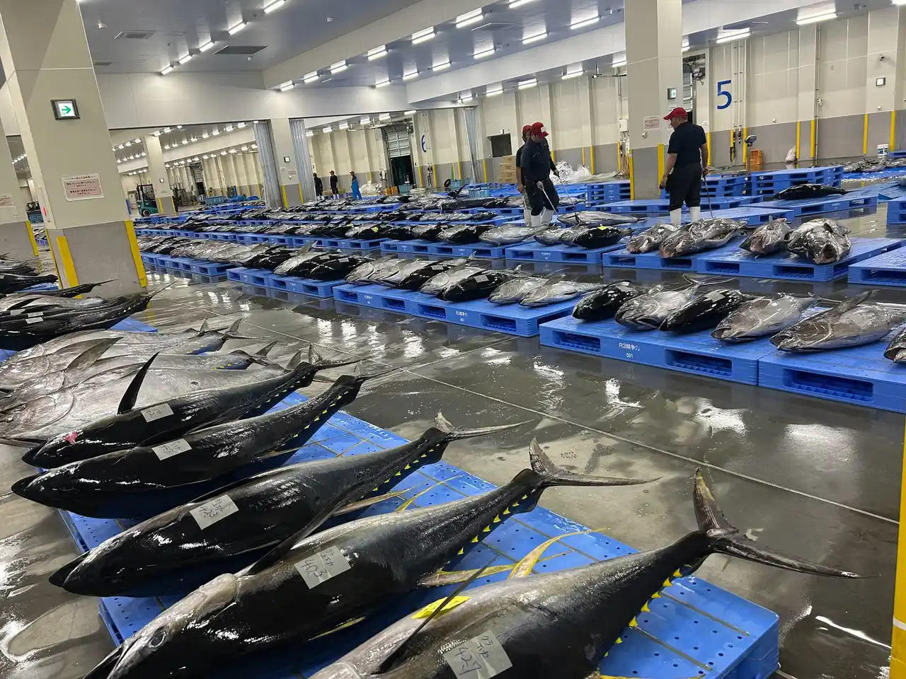 沖縄県の漁港で水揚げ・市場に並べられる“生”まぐろ |