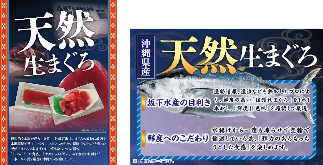 ■沖縄県産“生”まぐろは、お客様の目印となるPOPを掲示して展開!
