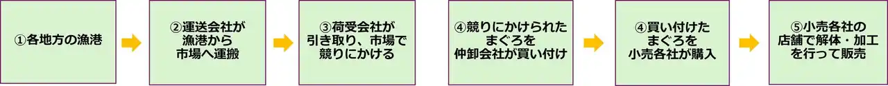 【首都圏でまぐろを買い付ける場合の一般的な流通経路の一例】