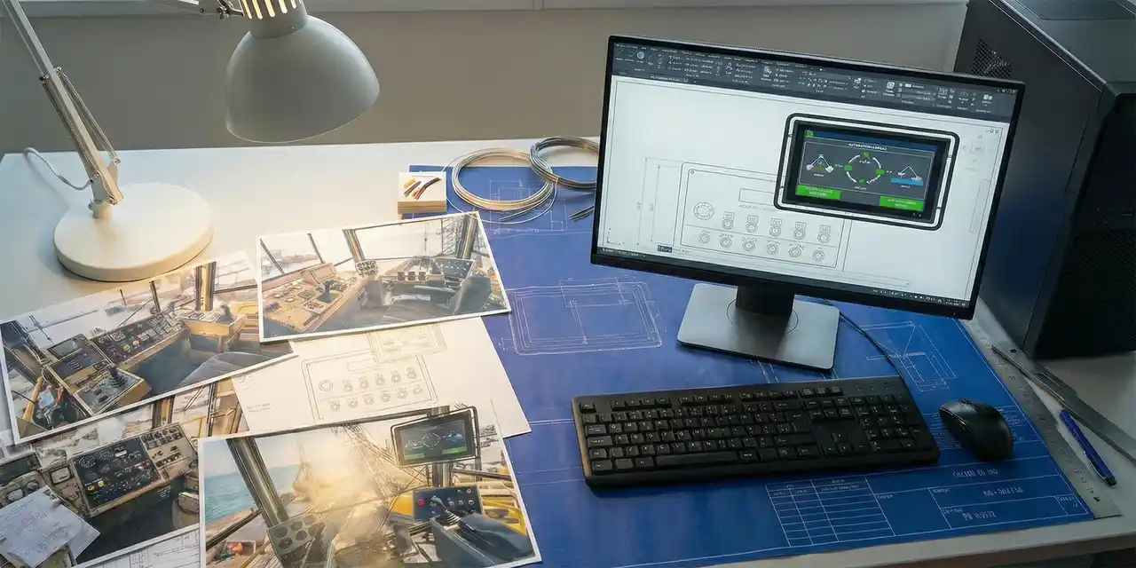 | 汎用遠隔操縦装置「XAURS」で培ったノウハウを活かし船室に合わせた遠隔操縦装置を設置、自動制御ソフトと連携することで既存グラブ浚渫船に自動施工機能を付与するシステムです。 | |||||||||