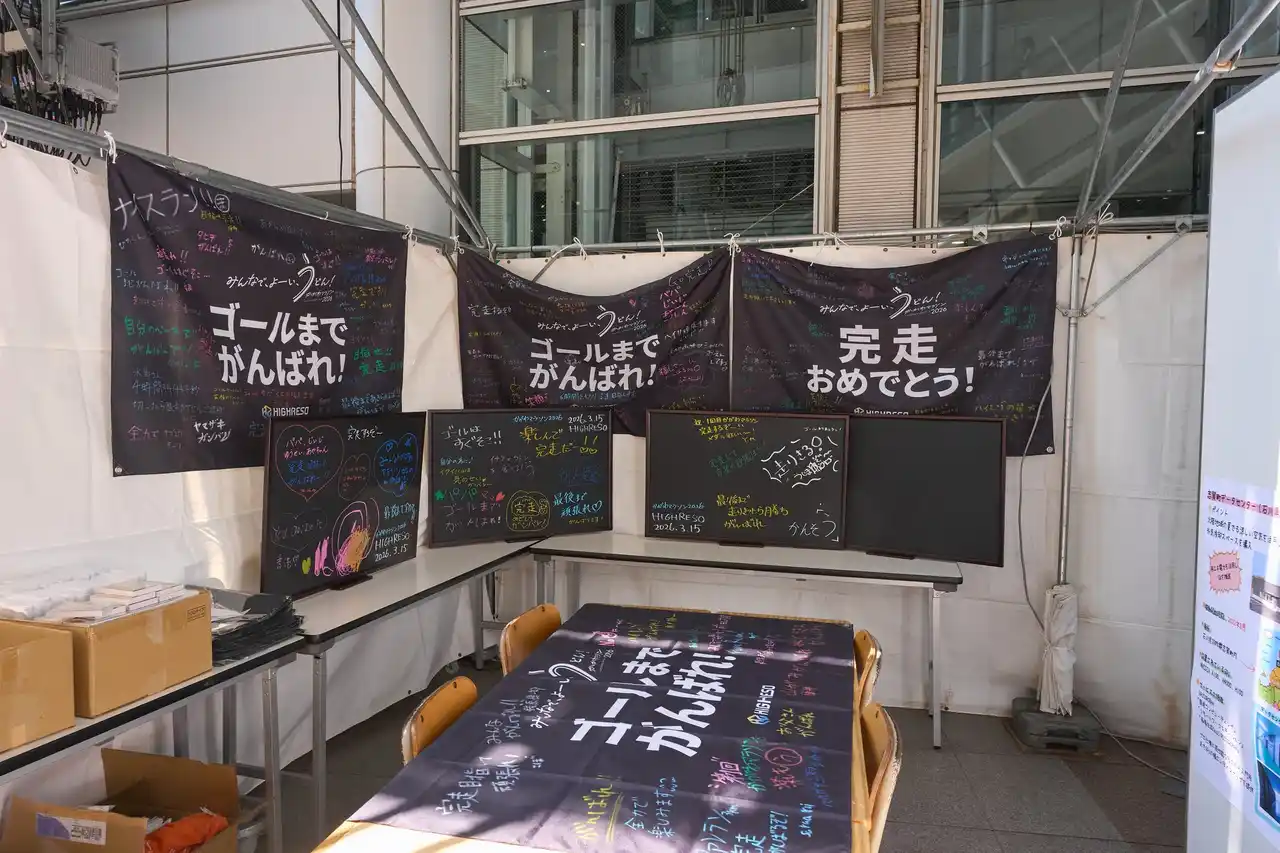 | ブースでは当社のAIデータセンター事業の紹介に加え、ランナーへの応援メッセージを寄せ書きできる横断幕コーナーや、完走ランナーが撮影できるフォトスポット、さらにオリジナルグッズが当たるカプセルトイなど、さまざまな参加型アクティビティを実施しました。 | |||||||||