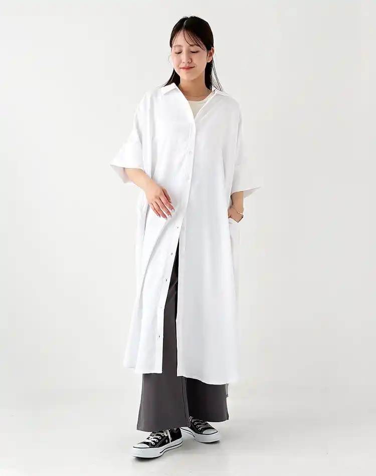 | 大人気シャツワンピが、汗ジミ防止機能はそのままにブラッシュアップ。両面撥水加工で、汗を気にせずホワイトやグレーのクリーンな着こなしを一日中楽しめます。小襟や後ろタックで洗練度もアップ。一枚でも、ワイドパンツとのレイヤードでもサマになります。機能とお洒落を妥協しない、夏をご機嫌にする実力派ワンピです。 | |||||||||||||||||
