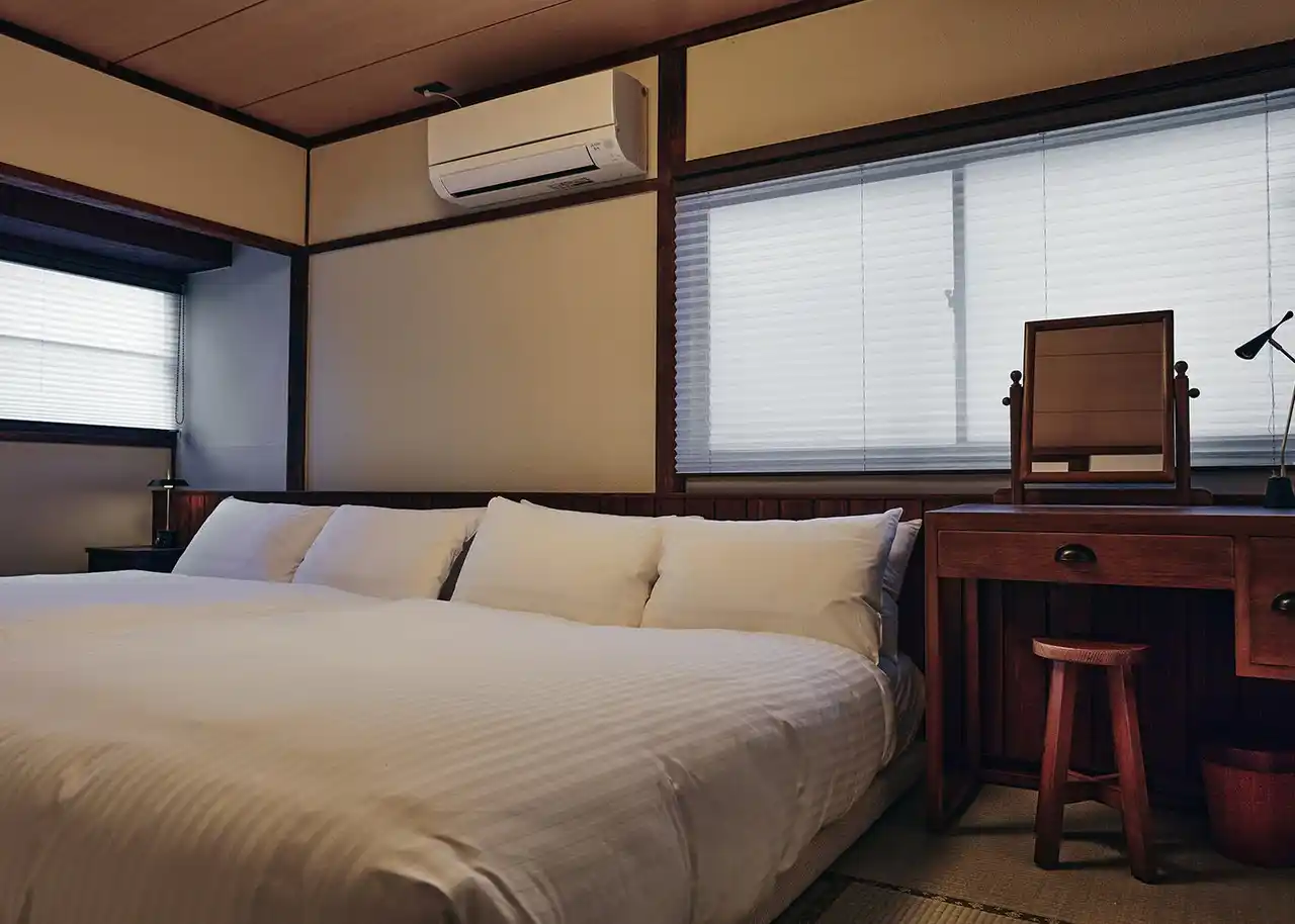 2階は寝室3室とダイニング。日本ベッド社製の上質なマットレスを備えたダブルベッド4台と敷き布団3組で、最大11名様までご宿泊いただけます。 |