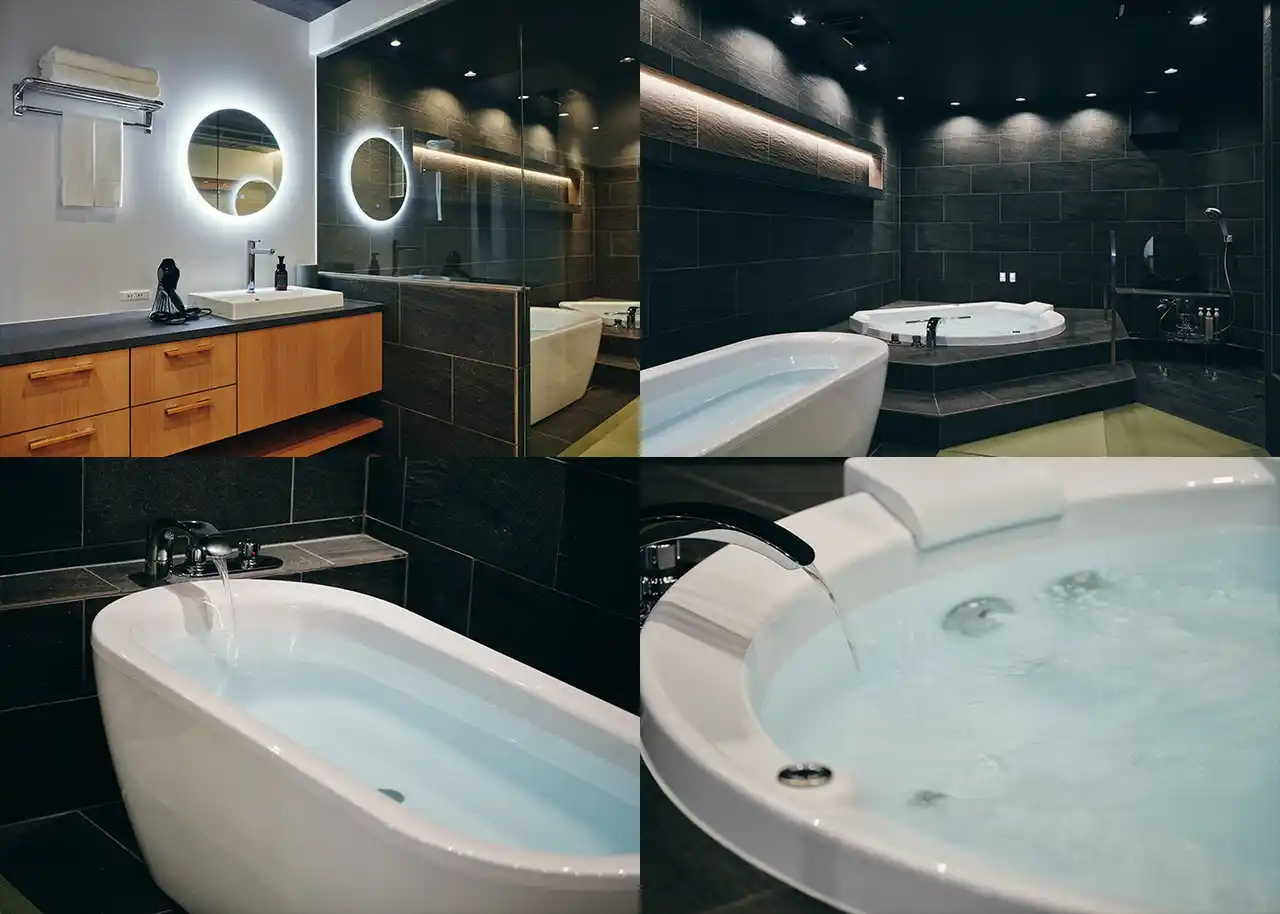 1階には内湯2槽(エアブロー機能付き)の湯処を備えており、ゆっくりと湯に身を委ねる至福のひとときをご堪能いただけます。 |