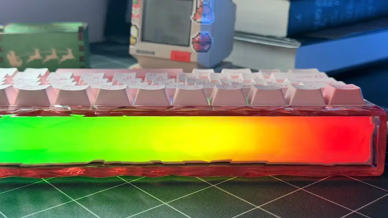 構造面では、HERO68はタイピング時のノイズを軽減するための多層静音構造(吸音材)を内蔵しています。また、PBT素材のキーキャップを採用しており、長期間の使用でも優れた耐摩耗性を発揮し、表面のテカリを防ぎます。 |