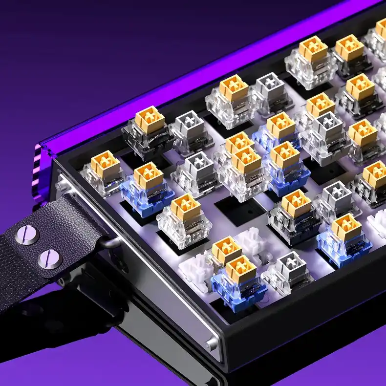 HERO68はキースイッチのホットスワップに対応しており、ユーザーははんだ付け不要で互換性のあるスイッチに交換することが可能です。スイッチの交換やパラメーターの調整を行うことで、異なる打鍵感を実現できます。 |