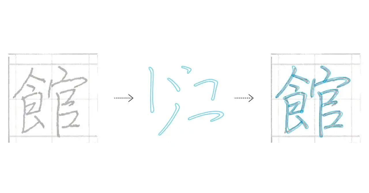 万年筆が描き出す美しい線の形状をデジタルで再現するために、あえて一度手で「書いた」文字から骨格を抽出し、その上にデザインしたパーツを配置する手法をとりました。これにより、手書き特有の品のある筆勢や、自然な骨格を宿した温もりのある書体が完成しました。 |