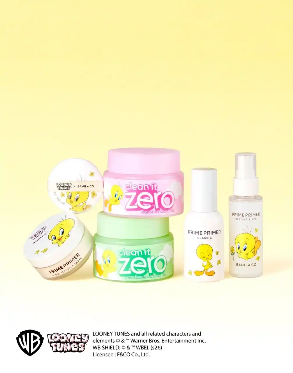 大人気コスメブランド「BANILA CO」から、ワーナーブラザース・ディスカバリー グローバル・コンシューマープロダクツとのパートナーシップのもと、ルーニー・テューンズのキャラクターで人気の「トゥイーティー」をフィーチャーした限定コラボレーションコレクションを、4月中旬より全国のバラエティストア、ドラッグストアにて数量限定で順次発売いたします。(※一部取扱のない店舗がございます) |