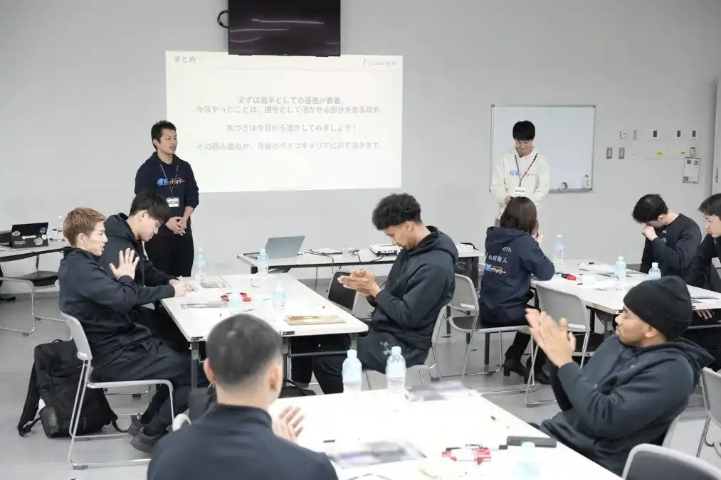 彼自身はまだ大学生なので、セカンドキャリアという意味ではまだリアルには感じられていなかったと思いますが、穴澤選手のこれまで歩んできたキャリアやターニングポイントの話を聞くことができ、「こういう選手なんだ」と知ることができたのはチームビルディングの観点としてもよかったと思います。 |