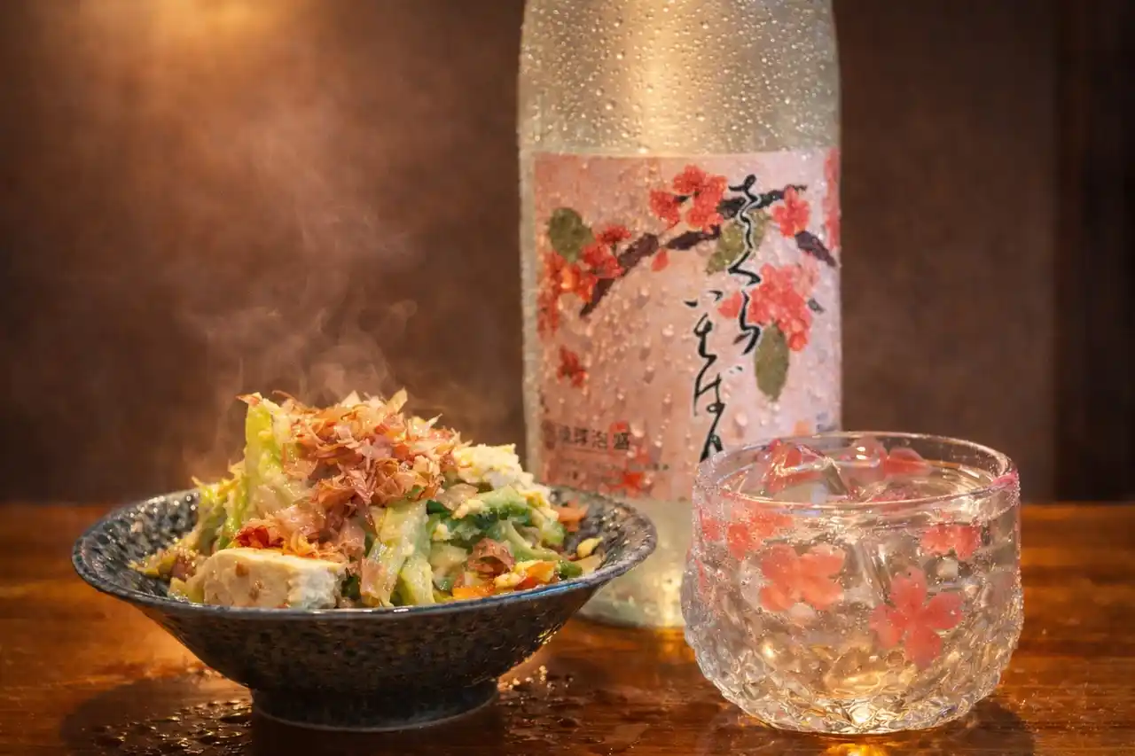 泡盛というと鼻をつく強いアルコール感や独特のクセを思い浮かべる方も少なくありませんが、しかし「さくらいちばん」はイメージを静かに、確かに覆します。グラスに注ぐとふわりと立ち上がる穏やかな香りがし、口に含めばアルコールの刺激より先に、やわらかな甘みが舌の上に広がります。喉を伝う感覚は驚くほどなめらかで、飲み慣れない方でも思わず「もう一口」と手が伸びる口当たりです。ロックで飲めば、氷が溶けるにつれて甘みがさらに開き、まるで春の陽だまりの中にいるような、おだやかな余韻が続きます。 |