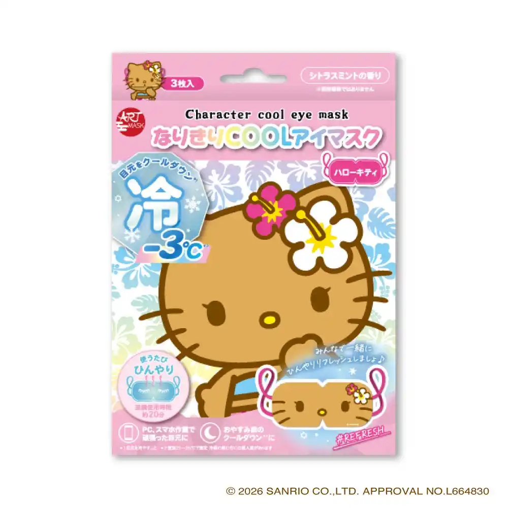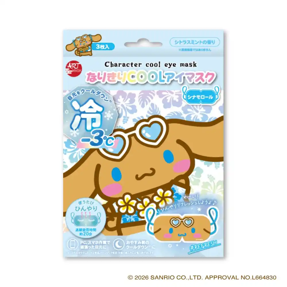 株式会社サン・スマイル(本社:東京都港区/代表取締役社長:田中徳也)は、ユニークな絵柄と可愛いキャラクターが魅力的な、ギフトやお土産にもおすすめのセルフケアブランド「ART MASK(アートマスク)」より、新たに冷感タイプの『なりきりCOOLアイマスク』を発売いたします。今回のなりきりシリーズは、株式会社サンリオの大人気シリーズであるトコナツバケーションデザインの「ハローキティ」「クロミ」「シナモロール」の3種での展開となります。4月20日(月)よりドン・キホーテ系列店舗限定※にて数量限定で発売いたします。