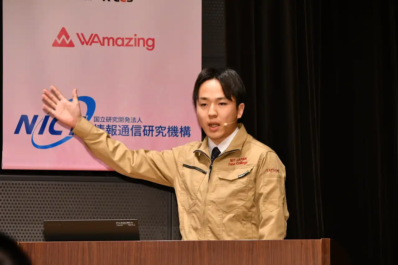 鳥羽商船高等専門学校(三重県鳥羽市、校長:三村 治夫、以下「鳥羽商船高専」)情報機械システム工学科4年生の学生が、令和8年2月17日(火)~22日(日)、国立研究開発法人情報通信研究機構(以下「NICT」)が実施する「令和7年度シリコンバレー起業家育成プログラム(以下、シリコンバレーブートキャンプ)」に参加しました。また、令和8年3月10日(火)に東京で開催された総務省・NICT主催「令和7年度 起業家甲子園」に出場しました。 |
