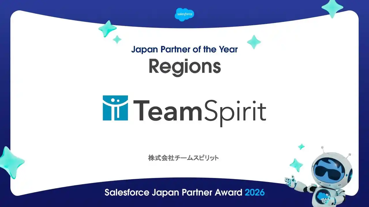 | 株式会社チームスピリット(本社:東京都千代田区、代表取締役CEO:道下和良、以下チームスピリット)は、Salesforce Japan Partner Award 2026における 「Japan Partner of the Year - Manufacturing -」および「Japan Partner of the Year - Regions -」の2部門を受賞しました。 | |||