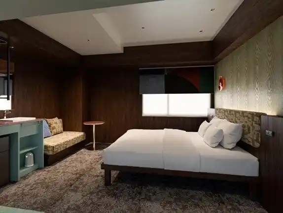 地上 14 階建ての館内は、1 階がロビーとフロント、2 階にゲスト専用ラウンジとレストラン、さらに一部客室を配置。チェックインから寛ぎ、ダイニングまでをシームレスにつなぎます。共用部のデザインは、映画・喫茶・寄席など新宿らしいカルチャーをモチーフに、街の熱気と余韻が交差する唯一無二の賑わいを演出します。 |
