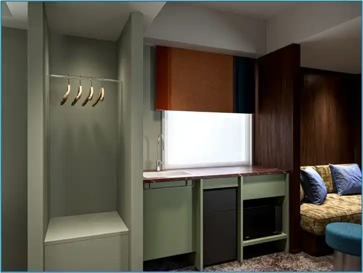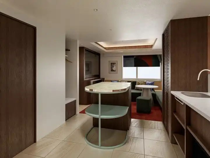 新宿の文化を纏うスイートタイプ。「劇場・映画」「はしご」「寄席」といった新宿三丁目をモチーフに、街の魅力を客室体験としてお楽しみいただけます。座席や生地にまでこだわった設えの中で、大型スクリーンによる鑑賞体験や、はしご文化をイメージしたカウンター、ゆったり寛げるソファ席をご用意。思う存分、新宿の夜を満喫ください。 |