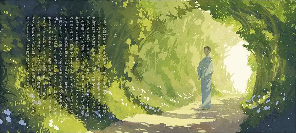 「乙女の本棚」とは、文豪の名作に、現代のイラストレーターが自由な感性でイラストを添える、絵本感覚で楽しめるコラボレーション・シリーズです。2016年のシリーズ第1弾発売から好評を博し、今回の作品で53冊目となります。『武蔵野』は、詩人、小説家、編集者など幅広いジャンルで活躍した、本シリーズ初登場の文豪、国木田独歩による、生活と自然が共存する物語を内包した土地「武蔵野」をめぐる愛にあふれた名文が楽しめる1冊です。叙情的なイラストを得意とし、本シリーズでは太宰治『きりぎりす』を担当する大人気イラストレーター・しまざきジョゼが、描き下ろしで多くのイラストを制作しています。オールカラーで、小説の世界をより豪華に楽しむことができる作品です。 |