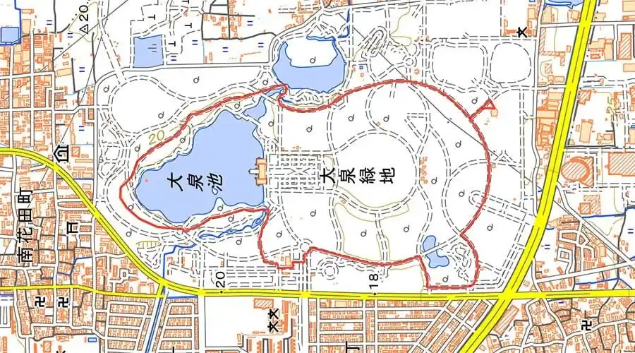 「大泉緑地カバくんスタンプラリー」は、大泉緑地内のチェックインポイントを巡りながら、歩いた軌跡で絵を描くGPSアートです。すべての行程を歩き切ると、踏破線上に「カバくん」が出現します。 |