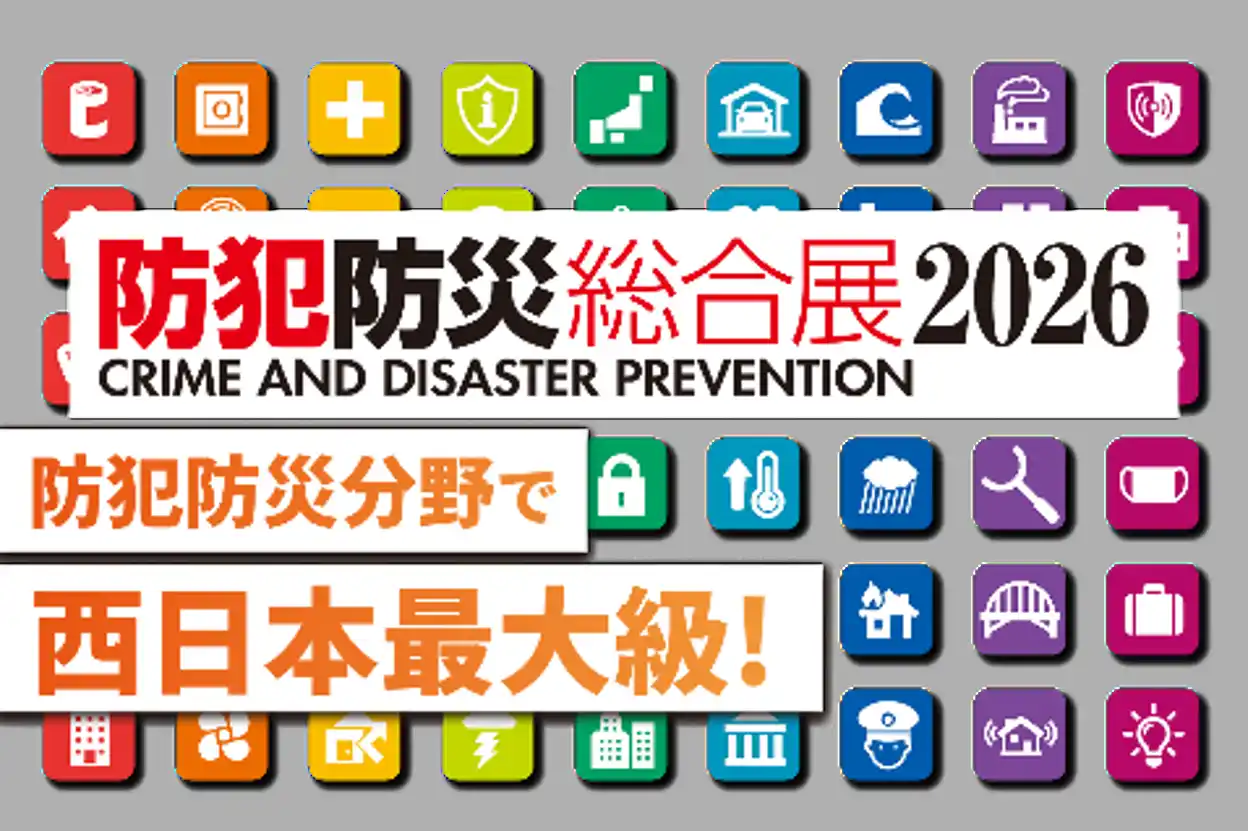 「防犯防災総合展2026」は、2026年で20回目の開催を迎える、防犯防災分野では、西日本最大級の展示会として高い知名度を誇ります。万が一の犯罪・災害対策から日常生活での備えまで、震災や水害などの自然災害、住宅・オフィス・街の安全対策に関する情報を発信。防犯・防災分野の最新製品や最先端の情報が大阪に集結します。 |
