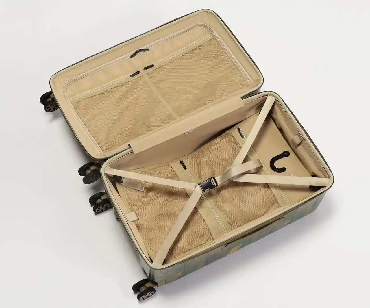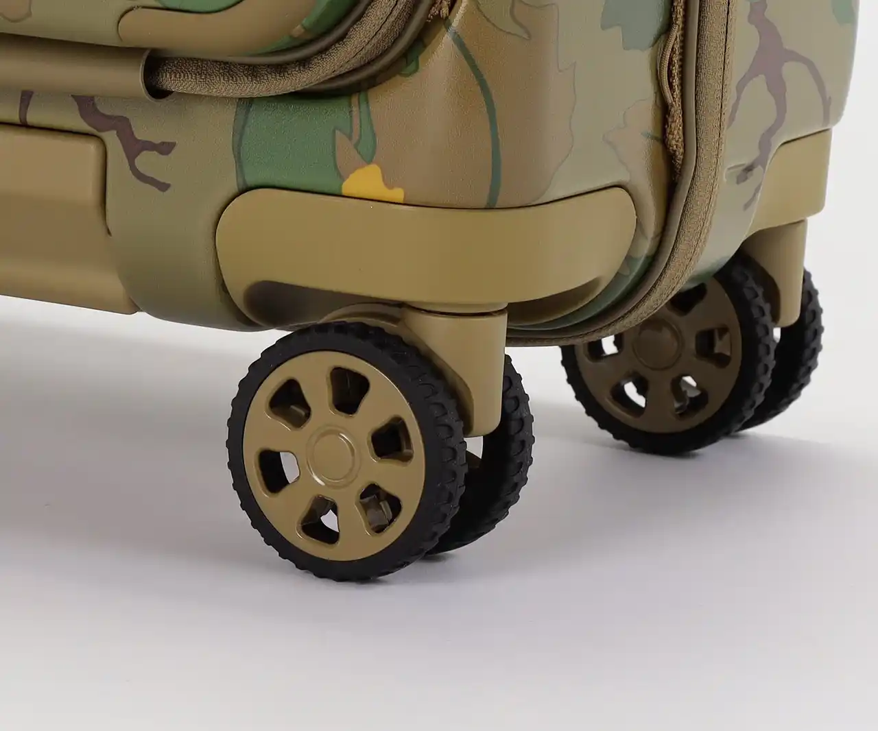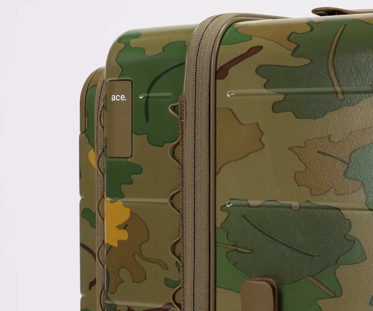 ・葉や雲をモチーフにした迷彩柄を採用。自然に溶け込み、空港で見つけやすいデザインです。 |
