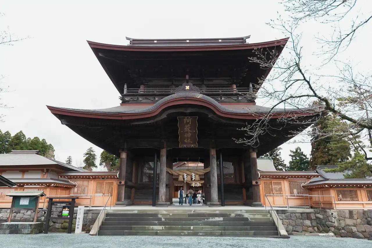 再建された阿蘇神社の楼門 |
