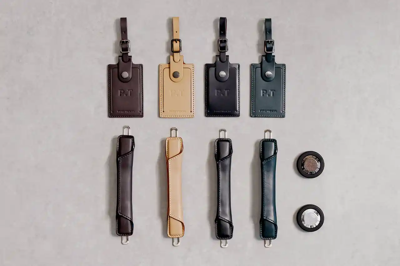 ・レザーハンドル(トップ・サイド)およびレザーラゲージタグ |